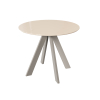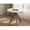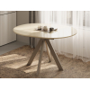 Круглая столешница смотрится актуально, а прочные опоры обеспечивают надежность конструкции. Устойчивое к влаге покрытие прослужит долго и обеспечит легкую уборку.